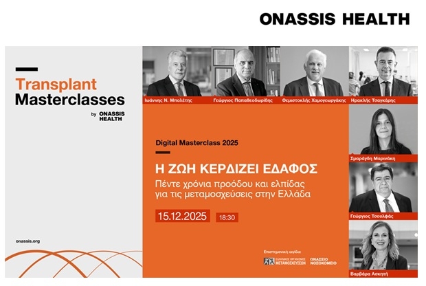 Το Digital Transplant Masterclass επιστρέφει και φέτος διαδικτυακά, τη Δευτέρα 15 Δεκεμβρίου, με έναν κεντρικό στόχο: να αποτυπώσει τη σημαντική πρόοδο των τελευταίων ετών στη δωρεά οργάνων και τις μεταμοσχεύσεις στην Ελλάδα. Το webinar, που υλοποιείται από το Ίδρυμα Ωνάση, υπό την επιστημονική αιγίδα του Ελληνικού Οργανισμού Μεταμοσχεύσεων (ΕΟΜ) και του Ωνάσειου Νοσοκομείου, επιχειρεί μια συνολική και τεκμηριωμένη καταγραφή της μεταμοσχευτικής πραγματικότητας στη χώρα μας και επιδιώκει να ανοίξει τη συζήτηση για τα επόμενα βήματα που πρέπει να γίνουν, προκειμένου να συνεχιστεί η ανοδική πορεία των τελευταίων ετών.